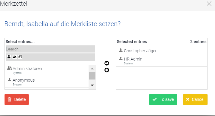Via “+ watch list” you can send this applicant to other employees in your company if this applicant is interesting for a certain area and employee.